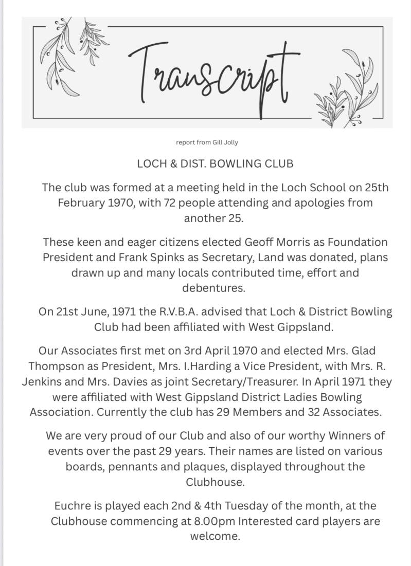 The Loch & District Bowling Club is also proud to be part of the Good Sports Program helping to inspire a healthy sporting environment while supporting Vic Health's THIS GIRL CAN programme for all women.